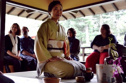 BBG’s Japanese garden is not a strict interpretation of a roji, but it includes several quintessential elements. Its wooden viewing pavilion is built in the style of a teahouse, and the roofed bench along the path is modeled after the waiting benches placed in tea gardens, where guests would await the ceremony. Recently a tatami platform was built to allow people to experience such ceremonies in the pavilion. Registered guests will have several opportunities to participate in tea ceremonies here, to be held October 11 and 19 and again in the spring. Advance registration is required.