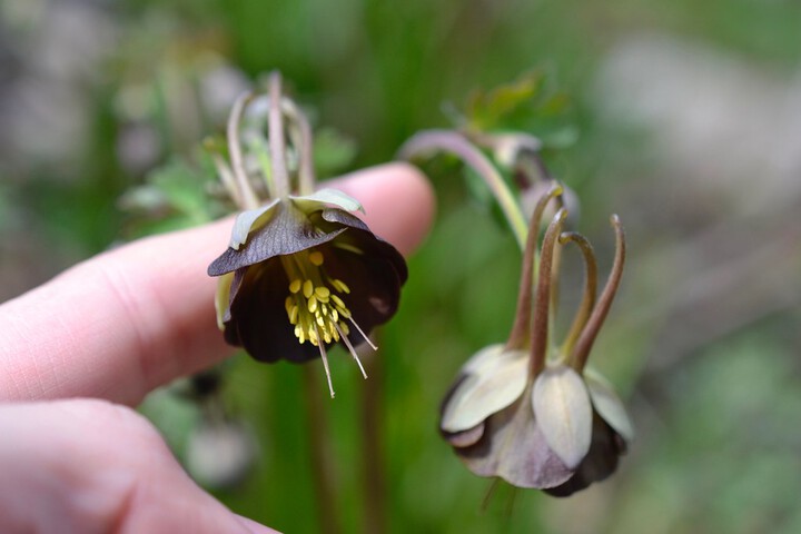 A variety of columbines grow in the Rock Garden, including this cultivar with unusual brownish-purple petals.