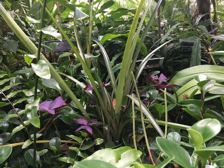 This unassuming plant was planted in the Tropical Pavilion earlier this year and hasn’t yet flowered. When it does, it should produce a cluster of flowers that will develop into a single pineapple fruit before its leaves die back. In the wild, it would also send out suckers at that point to produce new plants.