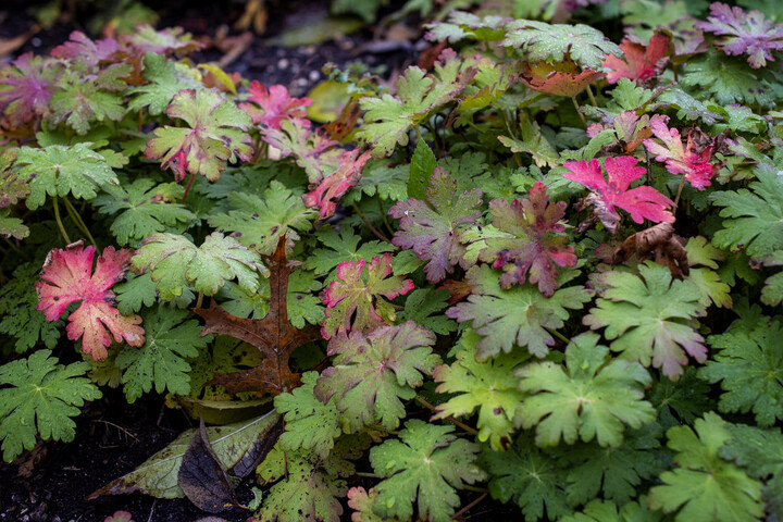 This versatile groundcover, native to southern Europe and Turkey, forms a dense, low mat of foliage in summer months. In late fall, the large, roundish, deeply lobed green leaves become a red carpet as they turn deep crimson. ‘Ingwersen’s Variety’ tolerates humidity better than many geranium species and also makes an excellent tree pit plant as it handles dry soils and some shade.