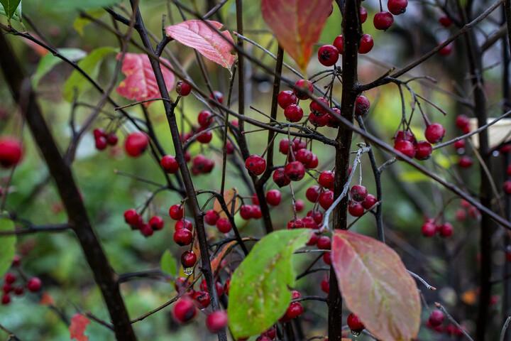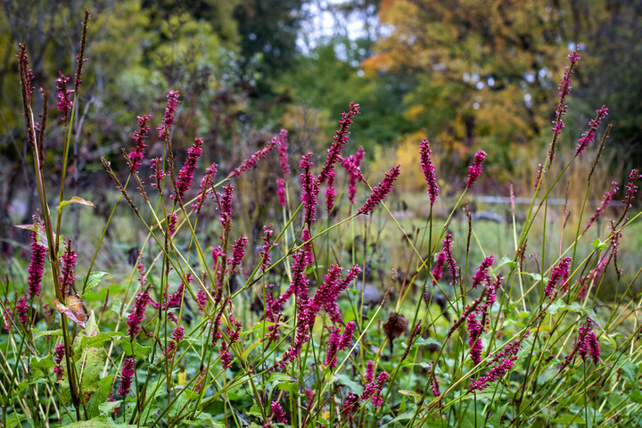 Maple trees are displaying brilliant colors and oaks are finally beginning to turn russet around Brooklyn. But it’s not just trees that change to bright colors in the fall. Small shrubs and herbaceous perennials also go from green to reds, oranges, and yellows. Be sure to wander along Belle’s Brook, where you can find plants at eye level and at your feet adding to autumn’s color with various shades of red.