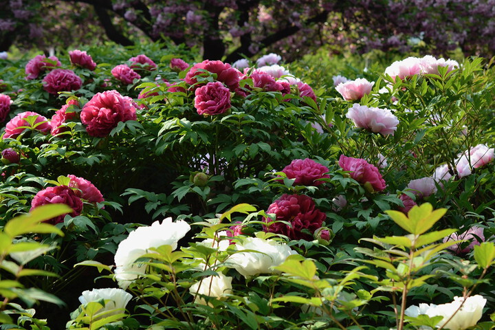 At the Garden, all six colors of tree peonies and many rare cultivars are represented in our collection. Safe and sound at last, the plants have been blooming gloriously each spring, usually in late April or early May. This year, they bloom while the Garden is closed to the public for the entire spring season, a historic and bittersweet moment. Below are some of my favorite cultivars. Enjoy the photographs and plan to visit them at the Garden next year.