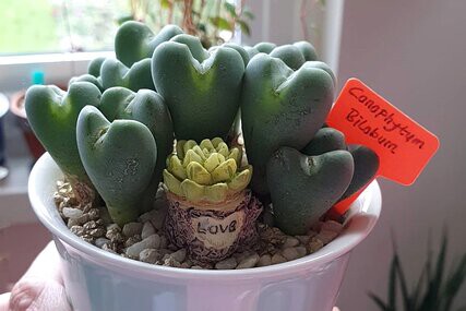 Living pebbles have a few similarities to sweetheart hoya, another easy-to-grow, heart-shape succulent. But unlike sweetheart hoya, which usually only grows one large heart-shape leaf, living pebbles can slowly spread and produce a small cluster of hearts. If you want more succulents, you can gently break off and propagate the individual hearts and plant them in a new pot.