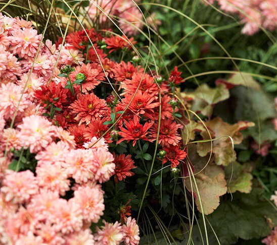 For best results, keep your potted mums in the garage or inside your house until temps drop. And when picking out plants at your retailer, choose mums that are still budding and not in full bloom. That way you'll be treated to a longer blooming cycle once you have plants in place.