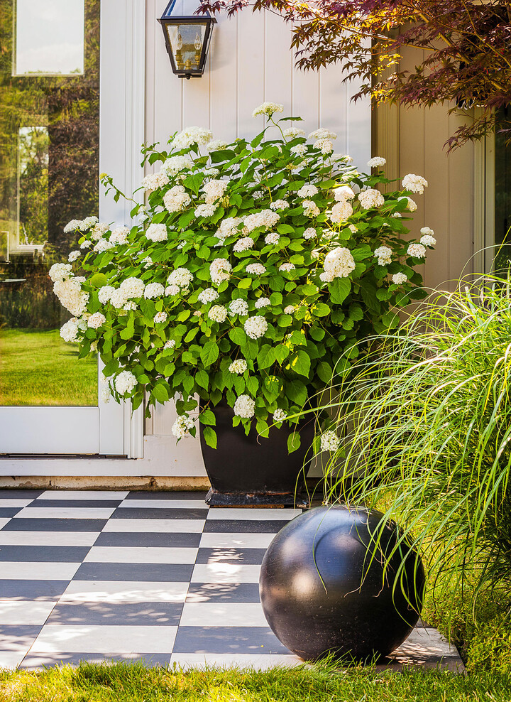 For optimal blooms, this green-stemmed hydrangea should be pruned soon after the flowers have faded in late summer. Then the shrub will have a chance to produce new growth where next year's flower buds will form.