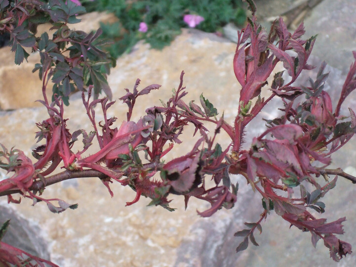 If you see a rose with unusual growth, it could be a symptom of RRD, the most serious rose illness. Check roserosette.org to see if it has spread to your area. You can upload photos of your rose onto their database to get an expert opinion. You can also call your local extension office. If one of your roses has RRD, remove it immediately and put it in the trash rather than your compost bin or with other yard waste for pick up so it has less chance of spreading.