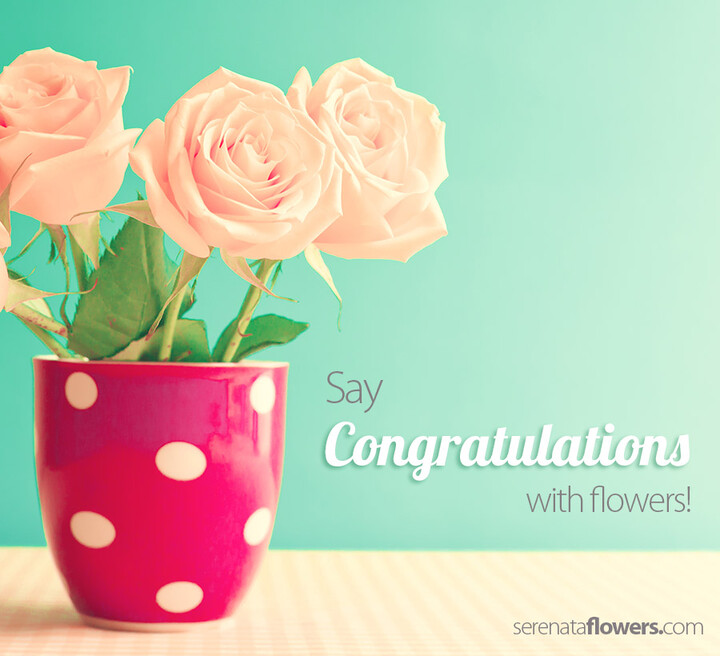 In some instances, you may not be able to hand deliver your flowers to say congratulations due to distance or other commitments. Therefore, asking your local florist to deliver these for you with a note from yourself can also be a nice touch; SerenataFlowers.com deliver bouquets of flowers for all occasions.