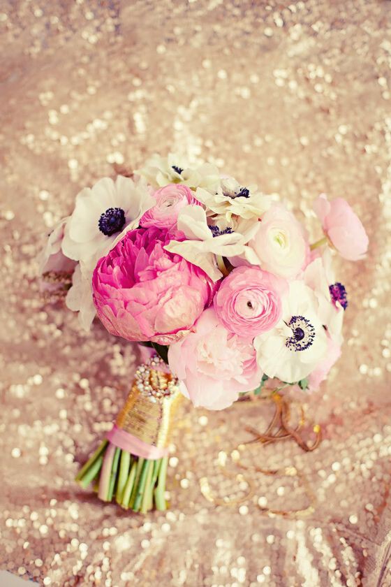 Although peonies are a timeless, classic choice for a wedding bouquet, they’re also very versatile and come in a range of colours and styles. If you’re looking for a peony bouquet that offers extra pizazz, choose a bouquet of warmer shades, including bronze, gold and rose gold. A number of today’s popular peony bouquets also come with embellishments in the shape of beads, pearls, sparkle and glitter.