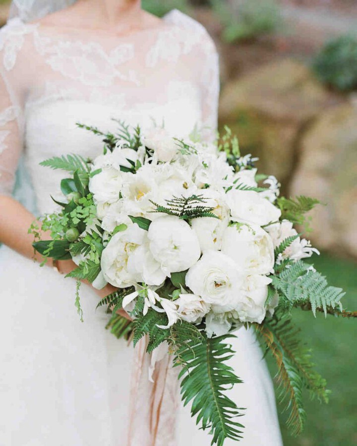 If you’re looking for a peony bouquet that is as simple as it is elegant, choose an all-white bouquet.
