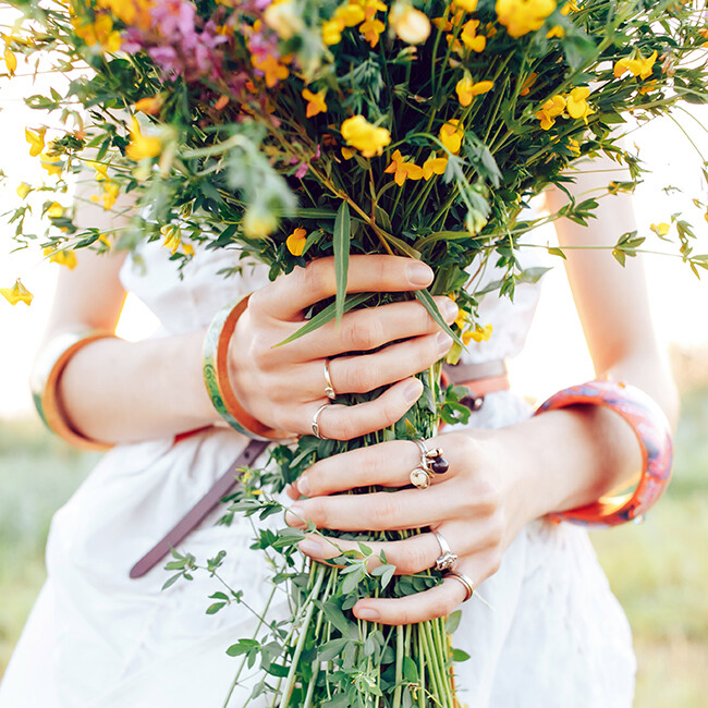 When opting for vintage flowers, the vessel plays a key part. Both family heirlooms and antique market finds, including retro milk bottles and urns are great options.