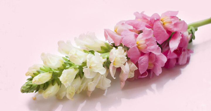 Las vistosas flores de dos labios miden aproximadamente 1,5 pulgadas de largo. Florecen primero en la parte inferior y luego en la parte superior de un tallo alto. Varían en color desde el blanco hasta varios tonos de rosa, rojo, amarillo, naranja y lavanda. Algunos, llamados boca de dragón tetra (o tetraploide), tienen volantes y son bastante grandes.