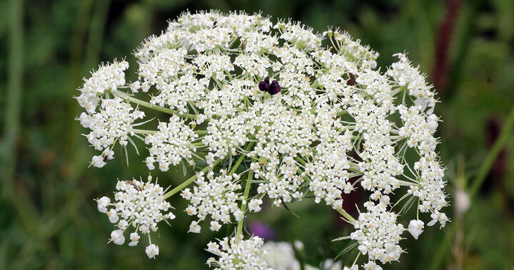 Encaje de la reina Ana. Las diminutas flores de la zanahoria silvestre crecen en forma de umbela ("pequeñas sombrillas") para formar un racimo de copa plana que parece un encaje. Le dan a la hierba su apodo más bonito: encaje de la reina Ana. Las flores suelen ser blancas, pero pueden ser de un rosa pálido o de un amarillo verdoso pálido. La flor central, cuando caen las flores del encaje de la reina Ana, la fruta madura forma un racimo erizado en forma de taza. Le da a la zanahoria silvestre dos apodos más: nido de pájaro y nido de cuervo, y cada grupo es a veces violáceo. El encaje de la reina Ana es resistente y se extiende rápidamente.