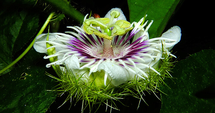 La pasiflora (pash’un flou’er) es una planta de la familia Passifloraceae. Hay más de 400 especies de pasiflora. Crecen en las áreas más cálidas del sur y el oeste de los Estados Unidos y en áreas tropicales de América del Sur, Asia, Australia y otras partes del mundo. La pasiflora es una enredadera trepadora o rastrera. Le dieron su nombre los primeros exploradores que vieron en él un símbolo de la crucifixión de Jesucristo. Los tres pistilos, en el centro de la flor, representan los clavos usados en la cruz. Los cinco estambres representan las cinco heridas de Cristo. Los diez sépalos y pétalos representan a los discípulos fieles, sin Judas ni Pedro. La hermosa corona de flecos representa la corona de espinas.