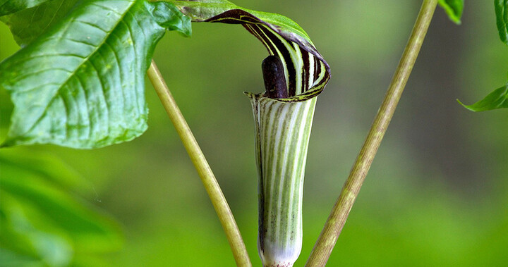Jack en el púlpito (jak en el púlpito) se encuentra entre las inusuales flores silvestres del este de América del Norte. Su capucha rayada, o espata, que protege las flores diminutas agrupadas en un tallo en forma de maza, o espádice, se asemeja a un púlpito cubierto a la antigua. El espádice, llamado "Jack" por costumbre, se imagina como un predicador en su interior.