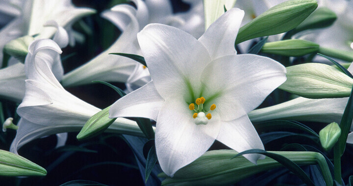 El lirio de Pascua es una flor que se ha convertido en un signo de Pascua. El lirio de Pascua es una planta alta con hojas largas y puntiagudas. Las flores grandes y fragantes en forma de trompeta son de un color blanco ceroso.