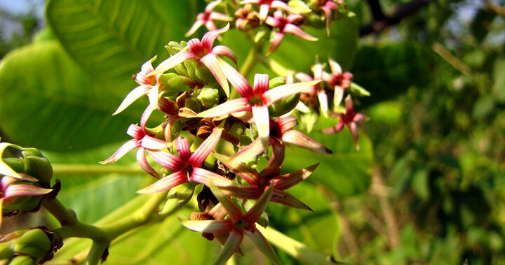 El anacardo es una nuez con forma de frijol que crece en un árbol tropical de hoja perenne. Los anacardos son deliciosos cuando se tuestan y son un alimento popular en los Estados Unidos, la India, Brasil y varios países africanos a favor de los anacardos que crecen en cáscaras en forma de frijol unidas a manzanas de anacardo parecidas a frutas. El tallo crece en el extremo opuesto a la nuez.