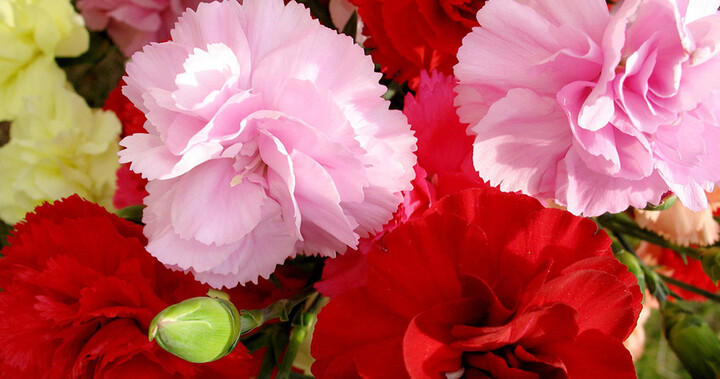 El clavel es originario del sur de Europa. La flor original era blanca, pero se han desarrollado diversas formas de color; los copos tienen rayas de un color; los bizarros están rayados con dos o tres colores; los picotees tienen una banda estrecha de color a lo largo del borde de los pétalos; y las fantasías están moteadas o manchadas. En Inglaterra y otros países donde el clima es adecuado, el clavel se cultiva al aire libre como flor fronteriza. Esta forma es más dura y fragante que el clavel de invernadero. El clavel de la frontera rara vez se cultiva en los Estados Unidos porque requiere veranos frescos e inviernos suaves.