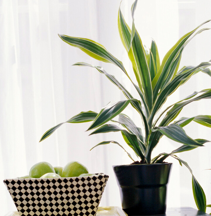 Dracaena is a large group of popular houseplants that tolerates a wide variety of growing conditions. It is grown primarily for the upright, straplike foliage that is either green or variegated. Occasionally the plants set clusters of small, fragrant, white blossoms (but rarely indoors). The small, bushy form of young plants suits mantels, tabletops, and desks. In the right conditions, the plants eventually reach 5 to 6 feet tall, making it perfect for adding life to a corner of the living room, dining room, or den.