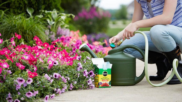 We've already talked about the importance of starting with great soil, but that soil works best in concert with regular boosts of high-quality nutrition for your plants. In other words, amazing soil + top-notch plant food = super garden success! So, a month after planting, begin feeding your garden with plant food like Miracle-Gro® Water Soluble All Purpose Plant Food. Be sure to follow label directions.