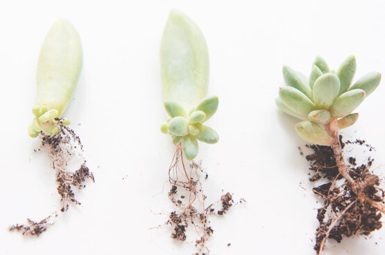 Once your new succulents are a little bit bigger, you'll notice that the initial leaves will become wrinkly, yellow, or dry. You can carefully pull them off and plant your succulent in its own plant pot.