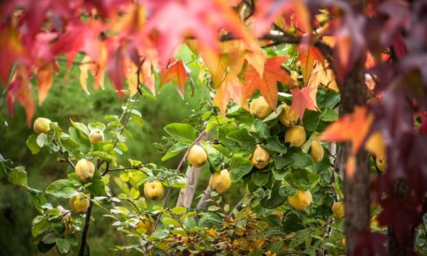 If you want something even quirkier, try a quince. These curious fragrant little fruits, like a cross between an apple and a pear, can be grown in exactly the same way as either of their close relatives. You can use them as you would a cooking apple, too. With a beguiling aromatic “pear drop” perfume and slippery texture, they are indescribably delicious in everything from jams to crumbles.