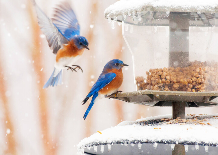 Keep feeders covered, if possible, to protect the food from rain and snow. When it snows, shovel or pack down the snow beneath feeders so that fallen seed can be easily found by ground feeders, such as mourning doves. Be consistent and keep those feeders stocked, especially when the weather is severe.