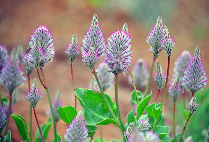 Native to the dry, arid plains of Australia, the long-lasting blooms of the ptilotus appear soft and fuzzy, but they feel quite hard and bristly to the touch. Due to their texture, the blooms manage to hold up quite well in various weather conditions. They are similar in appearance to the celosia, and both are members of the Amaranthaceae family.