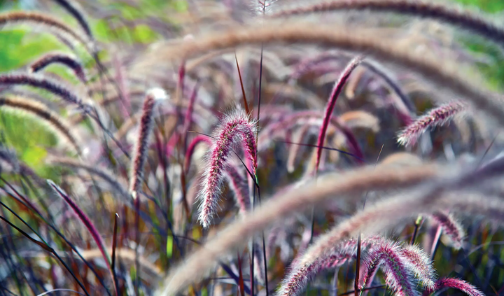 Because the autumn seed heads of this plant are so attractive, purple fountain grass, like maiden grass, is very useful in fall flower gardens. The feathery seed heads (or "plumes") can later be cut for dried flower arrangements.