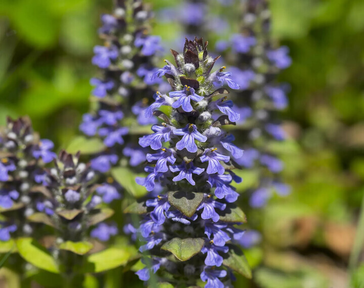 Anyone who has planted bugleweed in the hopes of covering a difficult-to-plant spot in the landscape probably won't be surprised to learn that it has invasive tendencies. After the charming purple flower spikes have faded, the plant gets busy spreading everywhere by sending out runners that rival mint in peskiness. Soon, the clump you planted beside your hosta collection is running right up the crowns of those hostas and everywhere else, taking up all of the water and nutrients and turning your garden into a monoculture. A lovely and well-behaved alternative is lungwort, which spreads slowly but not invasively in moist spots.