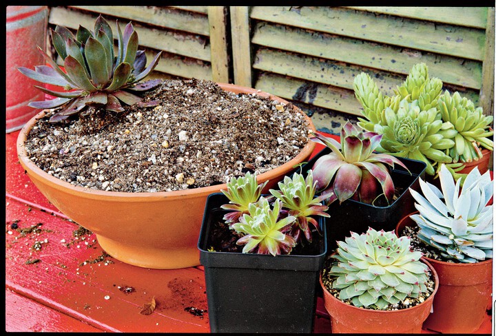 Remove the plants from their nursery containers, and plant the largest one on one side of the pot. Surround it with the other plants, clustering similar shapes together. Some common succulent types include:
