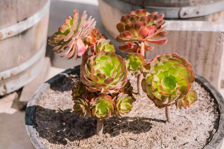 When grown in the garden, Aeoniums command the most attention when grouped in masses. Tall varieties can look like bonsai when they get shrubby. You can trim them if they get leggy. The cuttings will readily root and make new plants, helping you fill out your planting area.