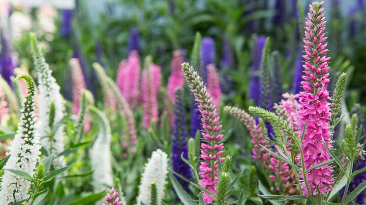 Veronica, also known as speedwell, is a hardy perennial that pairs well with sage varieties like Salvia nemorosa. When your Salvia blooms begin to fade, Veronica takes its place. It thrives in full sun to part shade, prefers well-draining soil, and is fairly water wise once established. Water 2 to 3 times weekly, depending on summer rain and heat, using your Flexogen Super Duty Hose and Thumb Control Watering Nozzle.