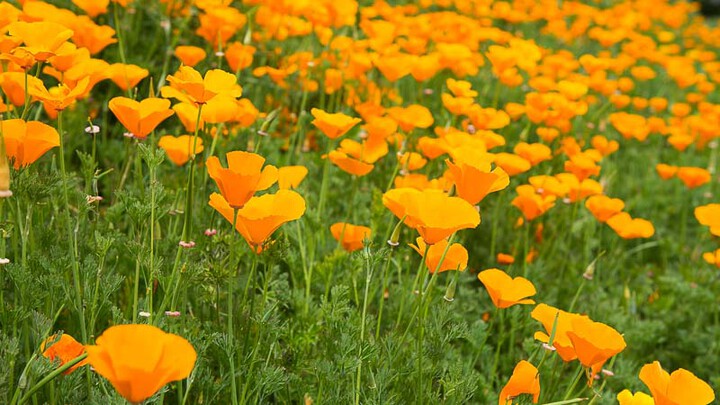 Ground cover comes in all shapes and sizes. Creeping thyme, lawn daisies, sweet woodruff, poppies (like the ones pictures) and even succulents form a fabulous ground cover. The roots of larger perennial plants do the job too. Start with the plants you love and go from there. Roots of plants do a wonderful job of reducing erosion.