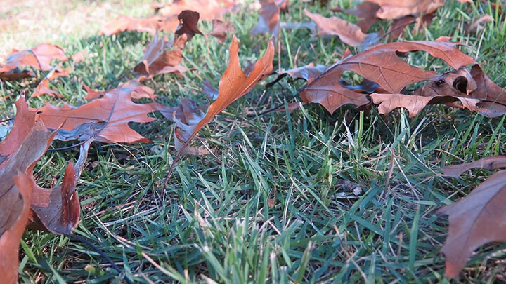 As the weather becomes cooler, continue to mow your lawn until it stops growing. For both cool- and warm-season lawns, you may be mowing into the late fall. When leaves fall from the trees during this time of year, feel-free to mow over them as they will decompose quickly and add organic matter to the soil. This will also stop them from forming a mat that smothers grass plants.