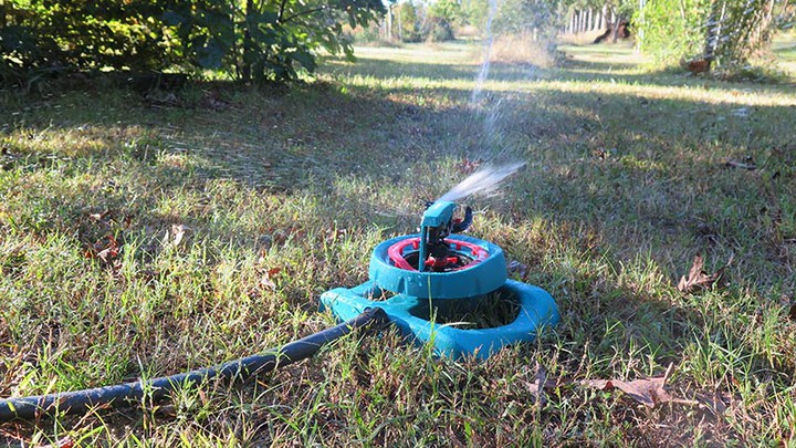 After you spread fertilizer, water your lawn lightly to wash the fertilizer off the blades of grass and down onto the soil. With the Gilmour Pattern Master Circular sprinkler, you can adjust the spray to water only your lawn and not the sidewalk or driveway.