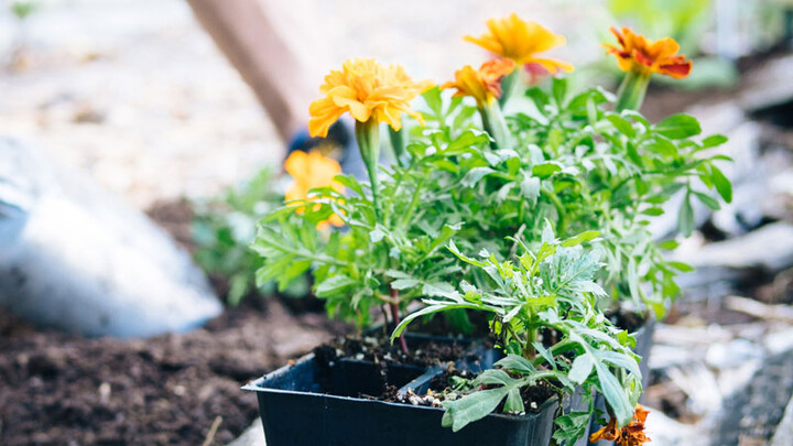 As a native to the tropics, lantana likes it hot and humid, and grows best in moist, well-draining soil (but can withstand drought conditions). It thrives in the sun, especially afternoon sun, and blooms year-round in tight clusters of red, orange, yellow, pink, or white. The flowers are ideal for planting along the perimeters of vegetable gardens, as they’re irresistible to bees, butterflies, and hummingbirds. Place them near crops that need to be pollinated, such as squash and melons.