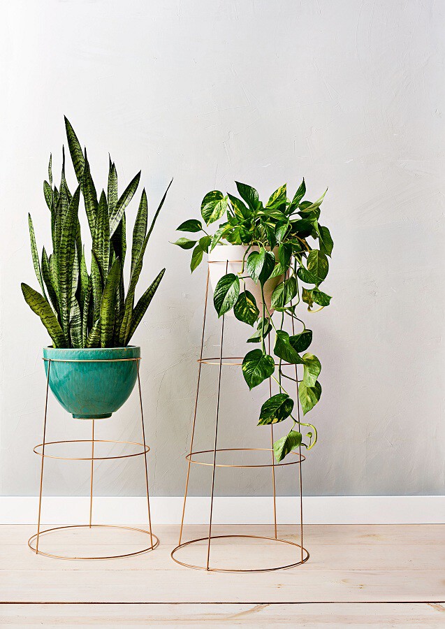Place the newly-painted cage on its wide end, and gently fit your pot inside the top. Be sure to pot your plants in vessels that allow for proper drainage, then slip those into pretty cachepots.