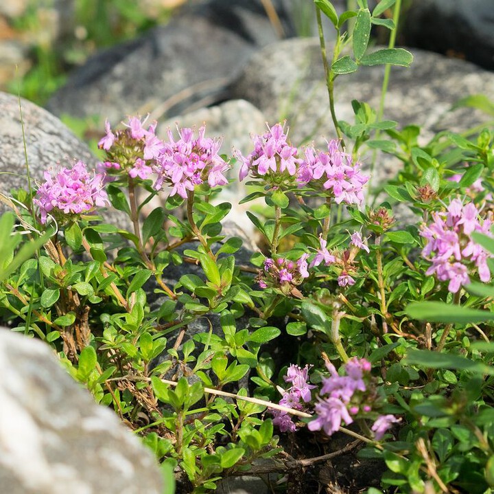 Thyme is a fast grower with teeny leaves and loads of purple or pink flowers. The best news: It thrives on poor soil, and pollinators love it! It's also a hardy ground cover that's most flavorful when used fresh in chowders, potatoes, and pasta dishes.
