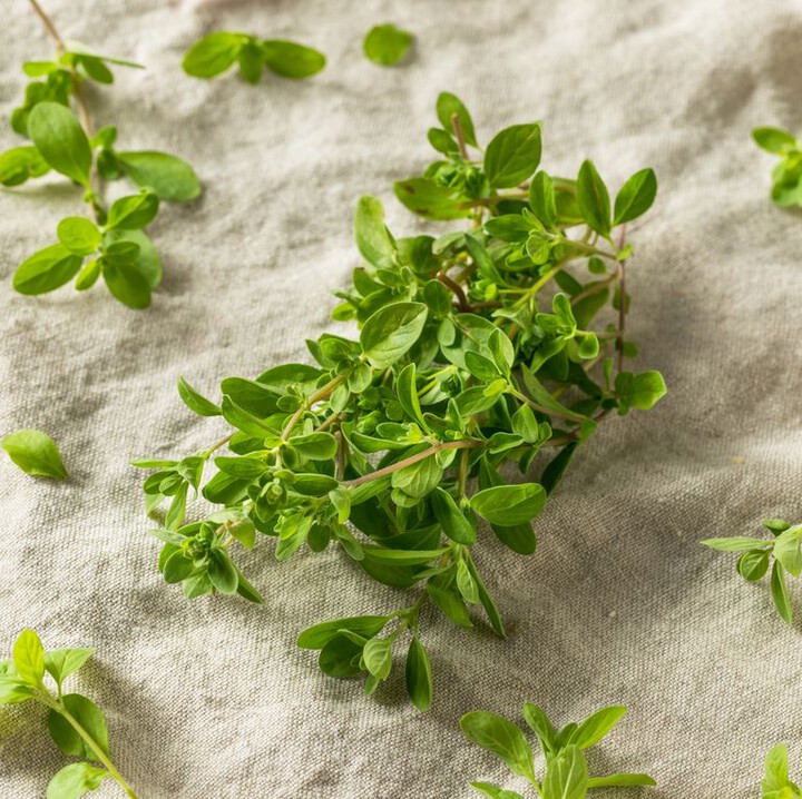 Marjoram has rounded leaves and teeny flowers you almost don’t notice. It prefers sandy soil, but it has zero tolerance for a frost. Plant only in warm climates, or treat as an annual in cold regions of the country. It’s used in poultry dishes, soups, and potatoes.