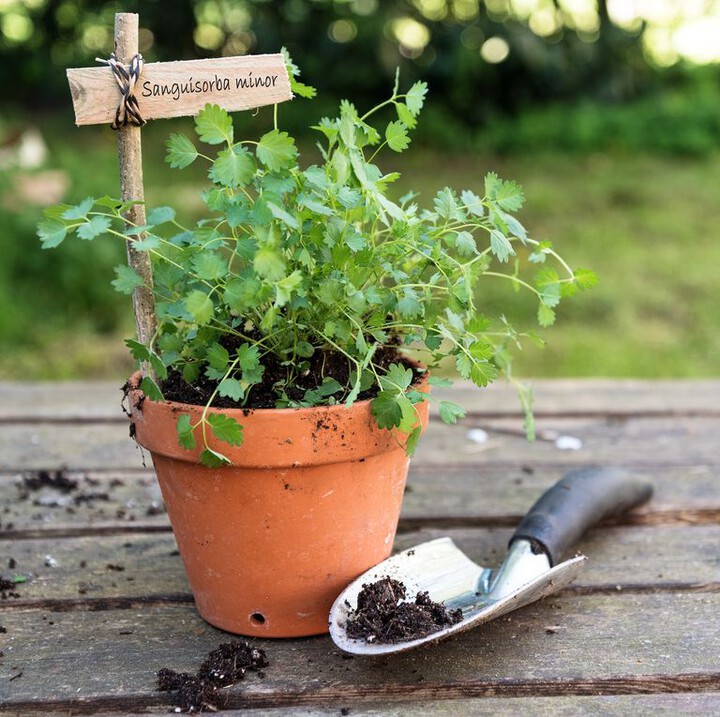 This herb is one of the lesser known, but it has attractive tooth-edged leaves and pink flowers. Add leaves to salads for a mild cucumber-y flavor.