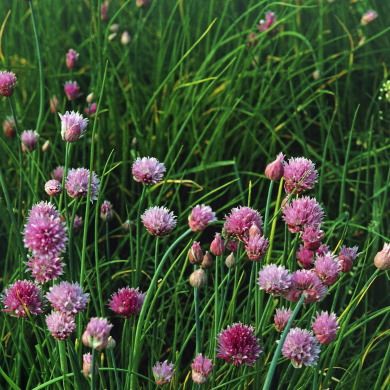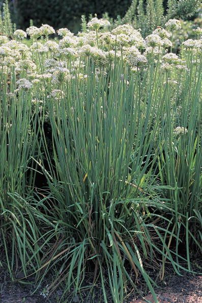 Thin, grassy leaves and white clusters of fragrant flowers on clumping plants make these a pretty addition throughout your garden. Use them in place of garlic for a similar but milder taste. Both the leaves and unopened flower buds are edible.