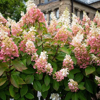 The most exciting feature of the 'Strawberry Sundae' hydrangea is the stunning show its' flowers put on throughout the season. Expect these shrubs to start sprouting mid-summer with creamy white conical blooms. Later, as nighttime temperatures begin to cool off, the color will start changing to rosy pink. The blooms will keep transitioning to a deep strawberry red by fall. At certain points in the process, the flowers will look like vanilla ice cream drizzled in strawberry sauce—truly living up to its name by reminding gardeners of a favorite refreshing summertime treat. Passersby will stop in their tracks on the sidewalk to marvel at the ombré colored hydrangeas blooming throughout your landscape.