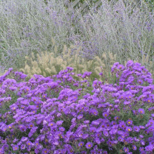 Fall perennials to prune in early summer: asters, Russian sage, garden mums, helenium, turtlehead (Chelone), boltonia, tall sedums and monkshood (Aconitum).