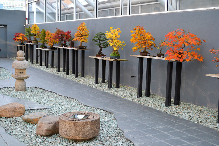 I have arranged the bonsai to create a visual flow and rhythm as visitors move through the museum. This is important because, ideally, one should experience each bonsai individually for optimal affect. In a space full of bonsai, there is the risk of their canceling each other out. (Imagine trying to have an intimate conversation in a loud, crowded room.) By balancing the arrangement of the bonsai, I try to elevate their message of compassion and inspire a profound curiosity and love of nature. Having so many different shades of color to work with this time of year really makes it exciting. When I see visitors’ eyes light up as they enter this space, I know the bonsai are showing guests another perspective of fall—something to carry in their hearts.