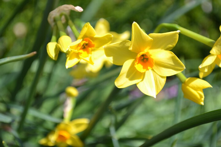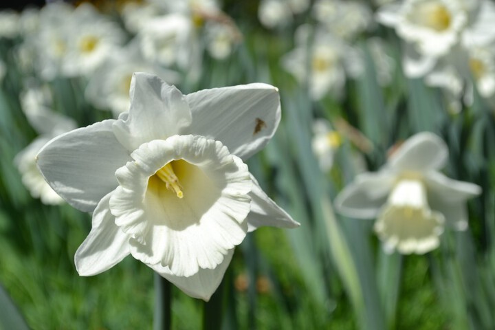 At first glance, you might think daffodils are all alike, but look closely and you will see that quite a lot of variation. Daffodils (Narcissus species and cultivars) are divided into different divisions based on the number of flowers per stem, flower shape, and the relative size of their petals and coronas (the “cup” in the center). This spring’s early-flowering daffodils have bloomed, the mid- to late-flowering cultivars are going strong, and there will likely be plenty in bloom through mid-May, says Anne O’Neill, curator of the Shakespeare and Fragrance Gardens, as well as Daffodil Hill.