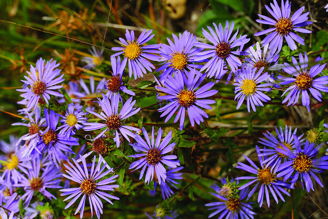 Asters, like dandelions and other composite-structured flowers, are wind dispersed, so to collect seeds, you have to go at just the right time—late enough that enough seeds have matured, but before they’ve blown away. You also want to collect from as many flowers as possible to increase genetic diversity. We collected only from large stands and always left at least two thirds of the flowers, enough for them to propagate. The actual collection is pretty easy—just pick the flower heads and bag them up in paper.