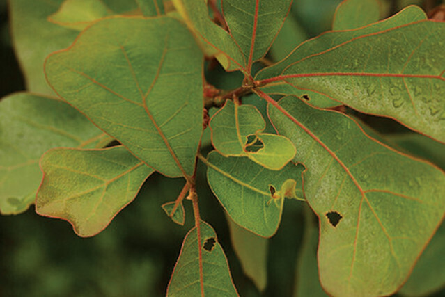 Pinecones can also be picked up off the ground, but the best ones—those that are most viable—are usually still attached to the tree, so we use pole pruners to collect them. In nature, their seeds are dispersed during forest fires; to propagate them, we put them on a baking sheet in a 200°F oven until we hear them pop. Inside the cone, the seeds have a winged structure similar to a maple’s.