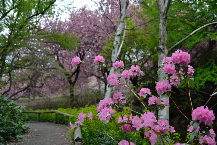 Every spring, all of New York City eagerly awaits Brooklyn Botanic Garden’s first cherry blossoms—usually those of Prunus ‘Fudan-zakura’ and P. subhirtella ‘Pendula’ on the shore of the pond. To celebrate hanami, the tradition of viewing cherry blossoms, visitors flock to the Garden over the next month as the rest of its famous collection of ornamental cherries blooms in the Japanese Hill-and-Pond Garden and the adjacent Cherry Esplanade and Cherry Walk. Each tree may be in bloom for only a week, but the sequence occurs over five weeks, and many people return frequently to catch the whole show.