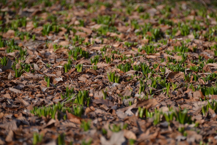The earlier mild temperatures may have put the bluebells and other shoots in a tenuous position. “Because we had such an unusually warm fall and early winter, many plants are ahead of schedule,” says Mauro. Bluebells typically emerge late February through March, not in January, he says.