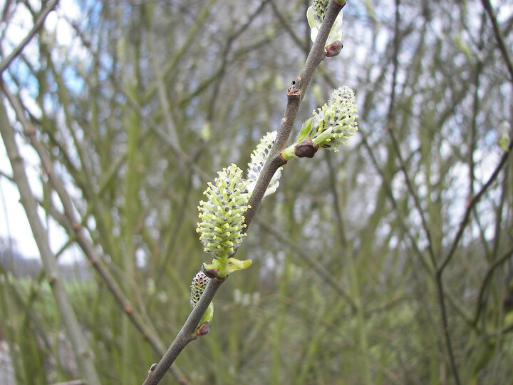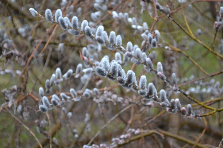 Even in full bloom, willow flowers hardly look like flowers at all. They have no petals or showy colors. Nor do they have any fragrance. Such flowers are called catkins, also named for cats, in this case for their tails (from the old Dutch word for kitten katteken). Many other trees and shrubs, such as birch and beech, also produce catkins.
